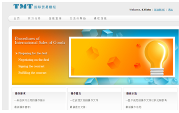 国际贸易模拟(Teach Me Trade, TMT)课程以完整的模拟出口交易为主导,依托于精心设计的TMT国际贸易仿真教学平台,使学生进入一家贸易公司并以公司业务员的身份独立自主地开展交易,体验一笔出口贸易业务操作的全过程,从交易准备到交易磋商、合同签订至合同履行的全过程业务操作。