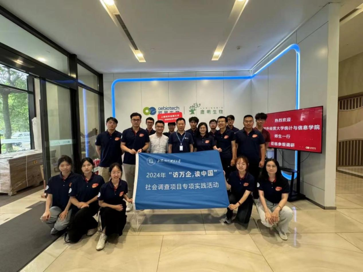 结合培养“数智+”交叉复合型创新人才的目标,万企项目不断拓宽合作企业类型。在本次万企调研中,邀请了华东师范大学生命科学学院党委副书记涂皘作为调研团队的校外指导教师,带领团队来到上海欧易生物医学科技有限公司、上海邦耀生物科技有限公司和上海元莘生物医药科技有限公司等多家生物科技企业进行实地走访调研。师生与相关企业负责人进行深度访谈,了解生物行业的现状和生物统计等相关就业方向的发展前景。