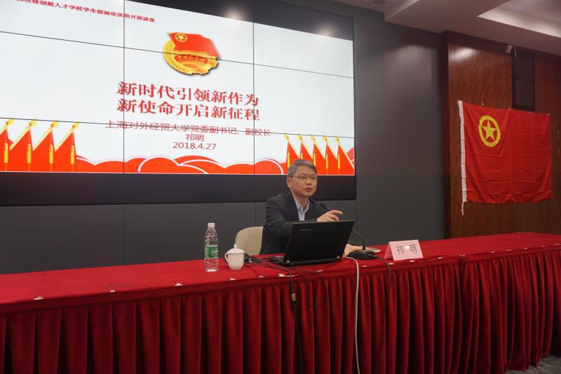 2018年4月27日下午,第四十六期团校暨创新人才学校学生领袖培训班开班仪式在图文信息大楼503报告厅顺利举行。本次活动由校团委主办,校党委副书记、副校长祁明出席开班仪式并作开班讲座,校团委、各学院团委老师以及本期团校的79名学员参加了开班仪式。