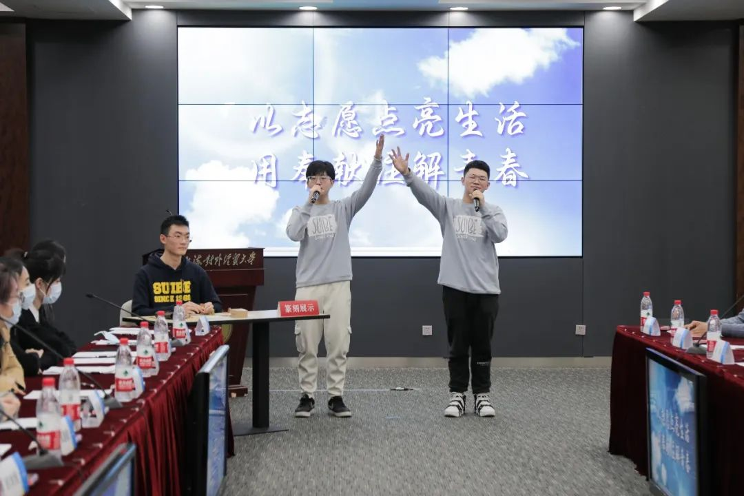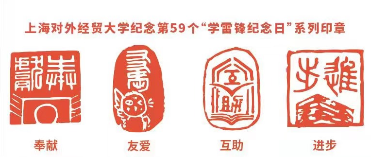 座谈会上进行了志愿者精神专题展示,伴随着2021年度学校志愿服务总结的视频,两名志愿者代表唱响《在你身边》。抒发了同学们心中对志愿服务的热情和向往,彰显了属于青年志愿者的阳光和活力。贸易谈判学院志愿者李味佳同学现场篆刻了座谈会原创印章,他把校园地标、啾团团形象与印章篆刻相结合,将“奉献、友爱、互助、进步”的志愿者精神融入这种特殊的形式中,传递了上经贸大学子的志愿之心。