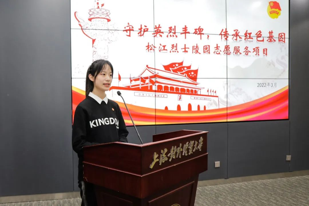 优秀项目代表、“松江烈士陵园志愿服务”项目志愿者梁璟晶讲述了她的志愿服务感悟。她说道,这是学校连续11年开展松江烈士陵园志愿服务,平均每年接待祭扫团队110余批,服务13000余人次,累计服务时长约18400小时。梁璟晶希望通过实践号召更多青年成为红色文化的传播者,红色信仰的传承者,把发扬红色传统视作光荣之使命、无悔之追逐,为守护不朽丰碑、展望复兴梦想而砥砺前行。