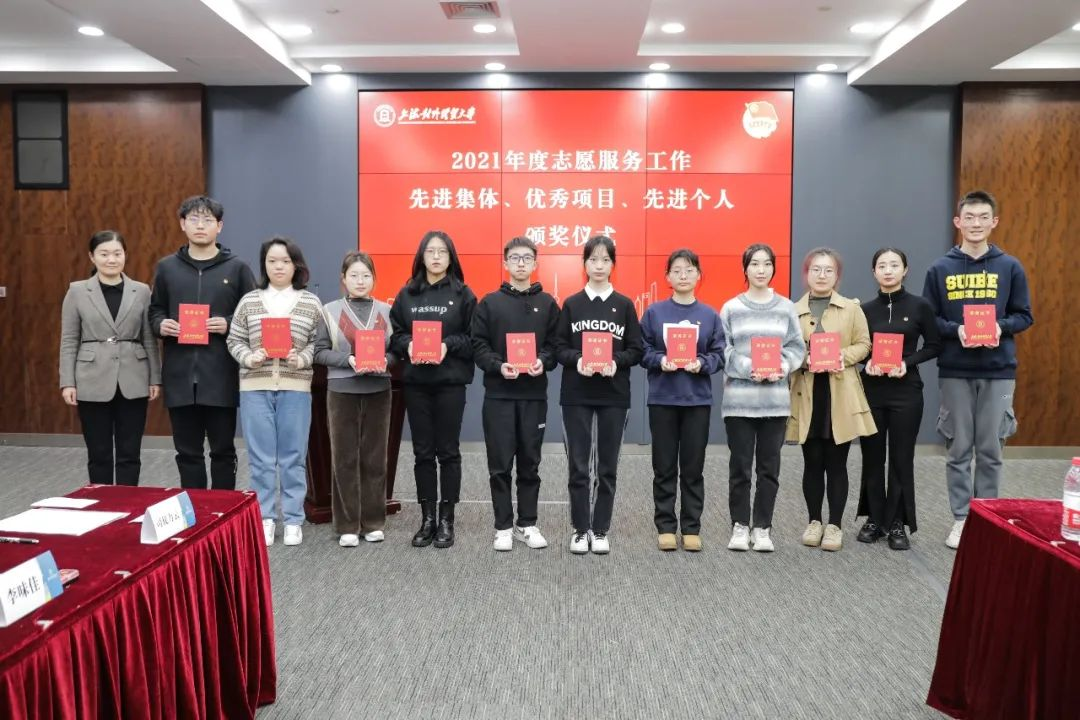 缪韵笛宣读了《关于表彰2021年度必赢626net入口首页志愿服务工作先进集体、优秀项目、先进个人的决定》。经评选,法学院团委等3个集体获“志愿服务工作先进集体”奖,松江烈士陵园志愿服务等5个项目获“志愿服务工作优秀项目”称号,高绮、李味佳等10名学生获“杰出志愿者”称号,于璐盈、魏泽坤等40名学生获“优秀志愿者”称号。