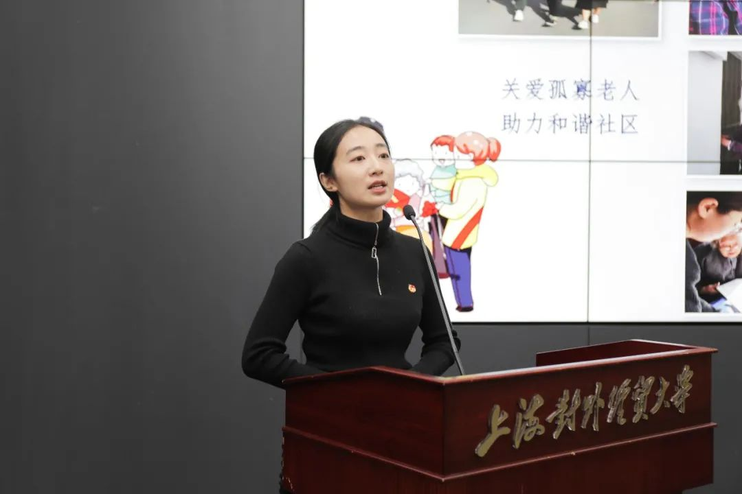 先进个人代表、来自国际商务外语学院的高绮分享了自己在社区和进博会的志愿服务经历。“青年的人生目标各有不同,但唯有奉献精神已融入时代青年的血液中。”她呼吁同学们在志愿服务中感受志愿精神的魅力,在学习工作中弘扬志愿精神,以奉献成就精彩,用笑脸温暖世界。