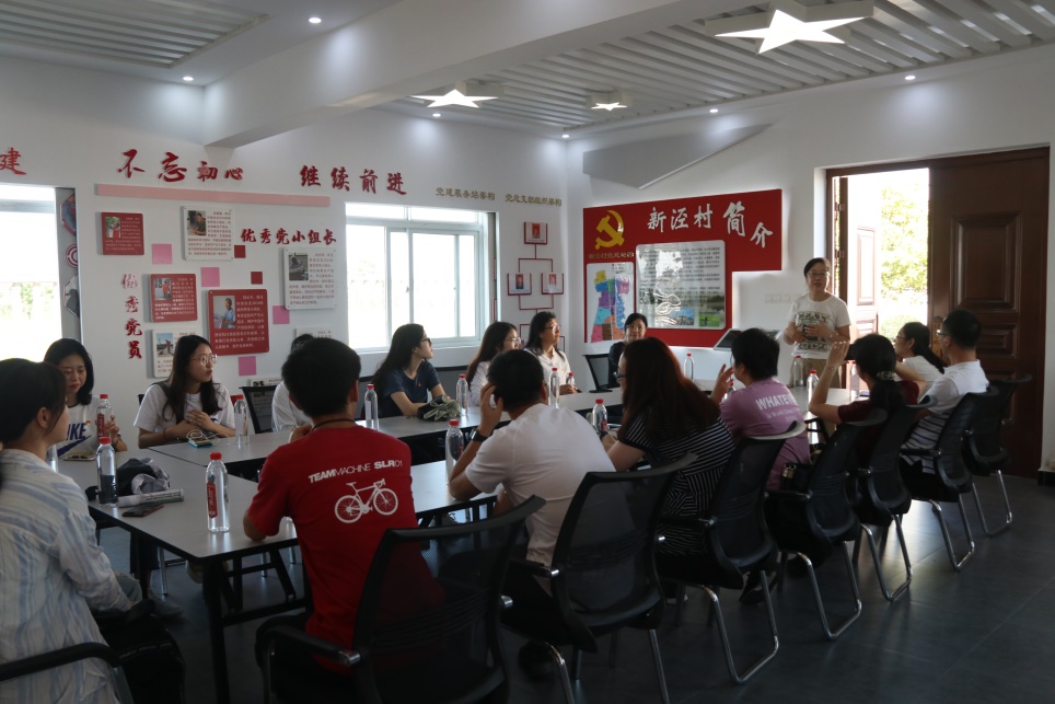 深入群众扎实学,服务乡村振兴战略。信息管理系教工党支部和研究生一支部积极贯彻乡村振兴战略,在前期多次沟通和铺垫下,来到金山区朱泾镇新泾村了解和探索为乡村振兴工作助力。一是参观了田园朱泾项目。了解了新泾村通过利用农村闲置资产,按照农村土地的“三权分置”政策,积极探索“田园+乐园+家园”乡村休闲旅游新路;了解了新泾村将现代化的科技手段以及互联网的优势与养老服务相结合,建成的朱泾智慧养老综合信息平台,更好地服务老人;了解到项目深入开发,为村民就地就业、创业带来机会,促进农民增收。以上举措,推动着乡村经济与产业发展。二是学院师生党支部与新泾村党支部沟通洽谈校地支部共建事宜,积极探索和实践利用学科专业优势为乡村振兴战略贡献自己的一份力量。结合参观和交流,双方互相深入了解了彼此的优势和需求,在合作共建框架下,就共同学习、技术咨询、社会实践等方面进行了探讨。