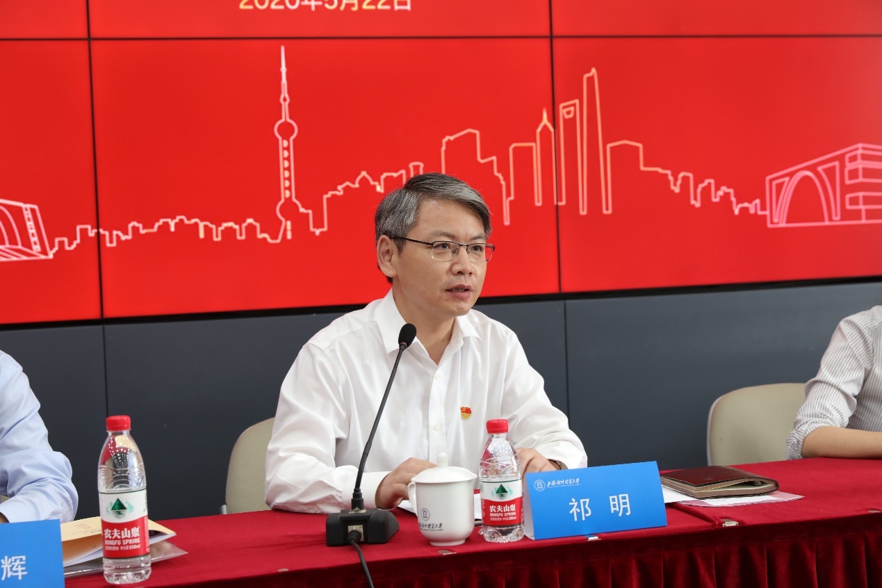 5月22日下午,统计与信息学院在松江校区信息楼503会议室举行“四史”学习教育暨“移动的党课”启动仪式。校党委副书记、副校长祁明出席并讲话,党委组织部副部长黄静,学院全体教职工、学生党员、发展对象和松江区广富林街道御上海居民区党支部党员等近200人通过线下和线上相结合的方式参加了活动。活动分为启动仪式和专题党课两个篇章,由学院党委副书记徐峰主持。