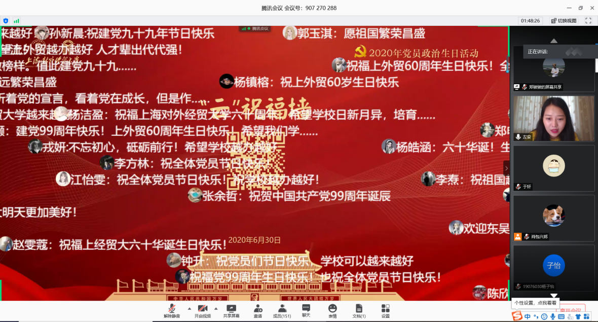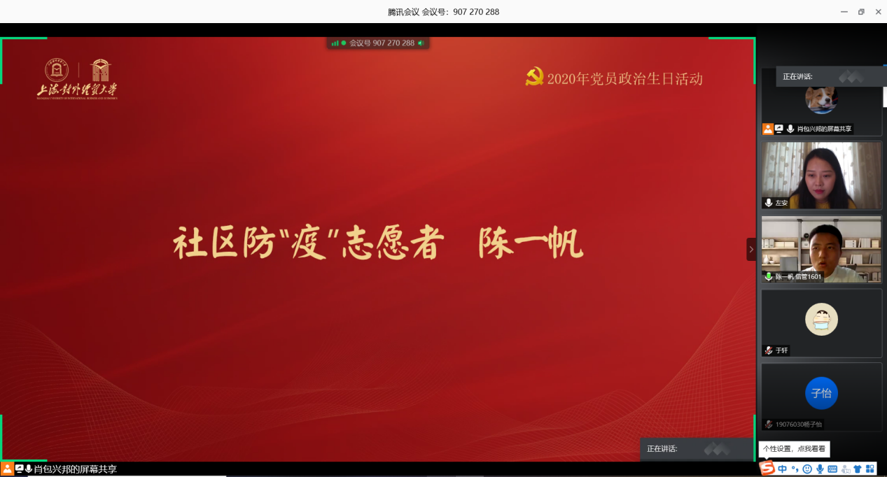 为庆祝建党99周年,筑牢师生思想根基,增强历史担当,学习和传承上经贸大人前赴后继为国奉献的奋斗精神和优良传统,统计与信息学院党委于6月30日在腾讯会议平台举办了“奋进六十坚守初心 ,学史鉴今勇担使命”党员政治生日主题党日活动。