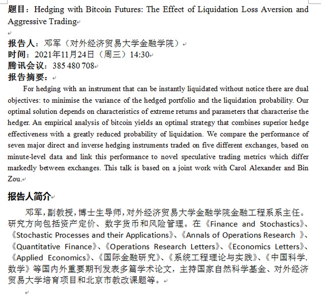 11.24 题目:Hedging with Bitcoin Futures: The Effect of Liquidation Loss Aversion and Aggressive Trading