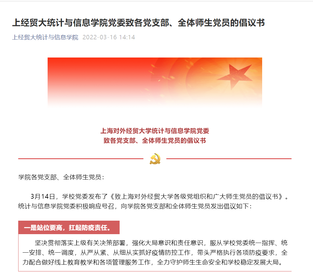 一名党员就是一面旗帜,一个支部就是一座堡垒。当疫情汹涌来袭,上经贸大统计与信息学院党委、党支部、党员立即行动起来,亮身份、勇担当、做先锋,团结带领全院师生戮力同心、共克时艰,共同守护健康平安的校园。