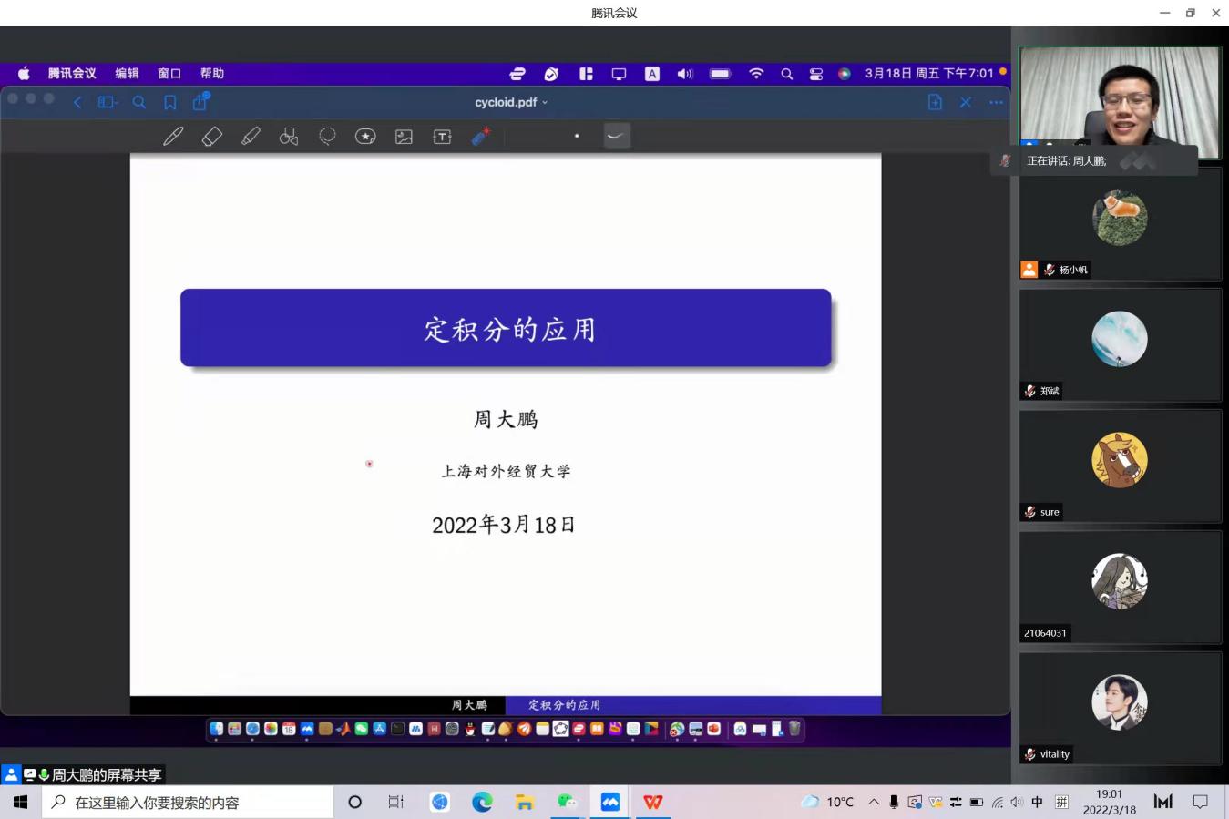 3月18日晚,第三场“云上课程帮”活动中,周大鹏老师就定积分的应用问题与同学们进行了分享交流,课堂氛围非常活跃。