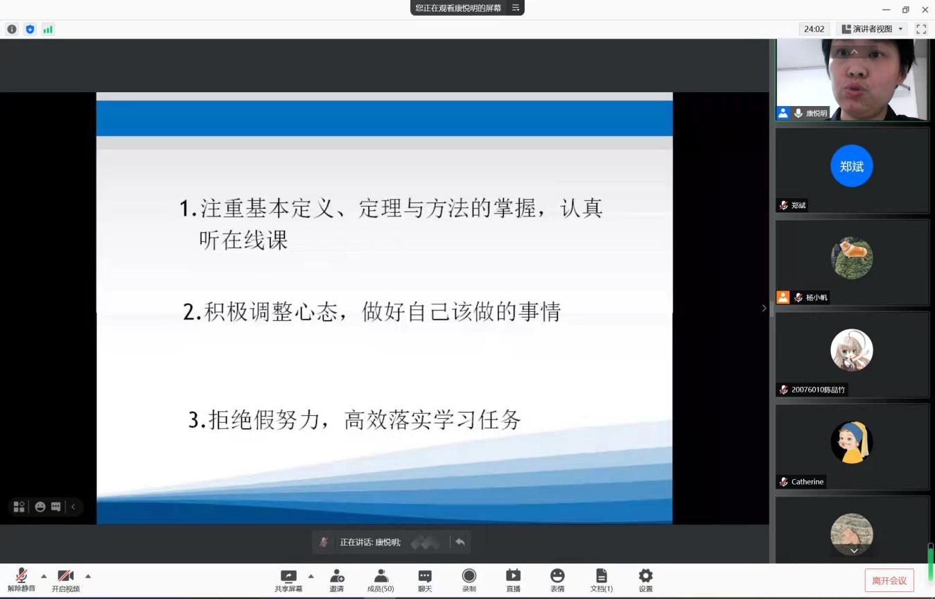 3月17日晚,第二场“云上课程帮”活动顺利举行,康悦明老师为同学们进行高数学习释疑,师生线上互动非常热烈。