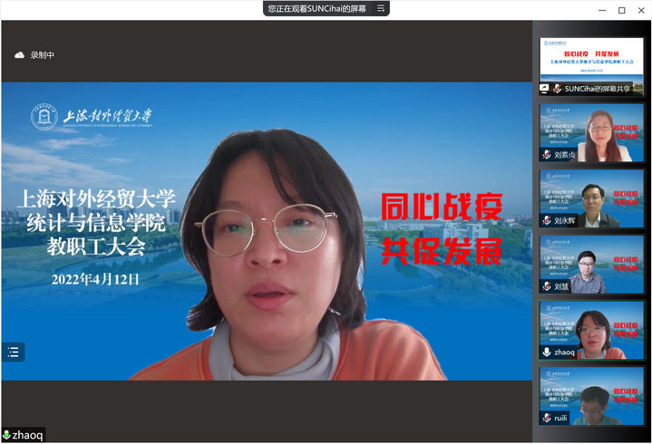 4月12日下午,统计与信息学院在线召开全体教职工大会,就近期疫情防控工作和教学、科研、就业等工作进行了部署,学院领导班子、全体教职工参加了会议。会议由学院院长刘永辉主持。