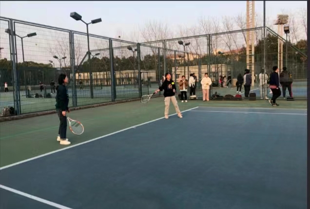 最后是网球的赛事:第一场女双,由郭一晨、冉晓璇出战。这是我们新学期的第一场比赛,二人首次搭档,一开始稳扎稳打,但随着对手将比赛节奏拉快,由于二人之间缺乏默契,接球时不免慌乱,失误频发,最后遗憾丢掉了这一局。紧接着开始的是第二场男双,由队内的俞天麒、江瀛杰代表出战。二人一开始和对手一来一往,从一比一到二比二,但因为江瀛杰有腿伤,跑动速度下降,比分逐渐被对方拉开,最终惜败于对方。第三场混双由张祖熙、李依蓉出场。二人分左右场,对手分前后场,经过一开始的试探阶段,对手逐渐将球击打到张祖熙半场,导致张祖熙前后不停跑动,体力消耗很快,最终我们遗憾不敌对手。第四场女单比赛,出场的是焦文清。球技娴熟的她一开始采用稳妥打发,两局都和对手比分持平。后来就逐渐发力,球速加快,使得对手来回跑动,击球动作渐渐变形,比分一下被来开,焦文清乘胜追击,连拿几局。最终我们大比分获胜。第五场男单,我们由于客观原因放弃了比赛。