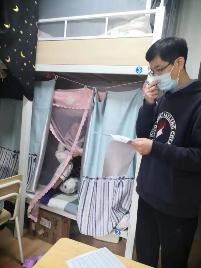 自3月22日起,学院党委副书记李睿老师就投入到学生社区抗疫一线,关心慰问驻校辅导员、关怀关爱同学,积极组织核酸检测等工作,急同学所急,想同学所想,积极解决问题,做好心理安抚,指导同学们做好疫情防控。自3月28日加入古北校区防疫专班以来,与同学们同吃同住共战疫,主要负责CDE楼学生的核酸检测等相关防疫工作,逐个走访了学院应统专硕同学宿舍。期间他还积极组织“战疫情 话心声 共奋斗”主题研究生“云上”系列座谈会,学院领导、导师、辅导员等参加。他认为,疫情防控,人人有责,从我做起。让他感触最深的是,所有校领导都始终坚守在抗疫第一线,他坚信在学校党委的坚强领导下,我们必能共克时艰,取得战“疫”的伟大胜利。