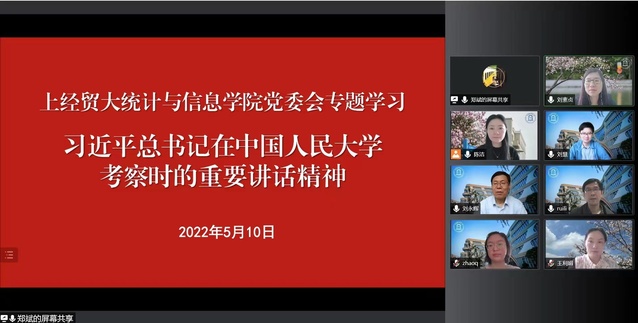 5月10日上午,统计与信息学院召开党委会,专题学习习近平总书记在中国人民大学考察时的重要讲话精神。会议由学院党委副书记(主持工作)刘素贞主持。
