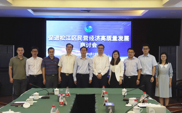 9月22日上午,松江区召开促进民营经济高质量发展商讨会,邀请必赢626net入口首页统计与信息学院进行专场研讨。统计与信息学院院长刘永辉、党委书记刘素贞、党委副书记范鸣等一行,与松江区委常委、统战部部长朱大章,区发改委主任孙文杰、区工商联党组书记沈伟、区经委副主任许士东等松江区相关部门负责同志,就松江区民营企业纾困政策成效、促进民营经济高质量发展等问题进行了深入交流。会议由朱大章主持。