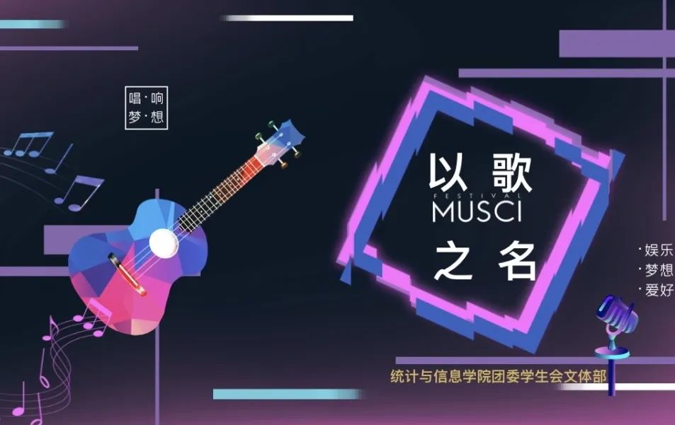 以歌之名,一场与音乐为伴的比赛活动。激昂同学们的活力,舒缓同学们的压力,让同学们充分发挥自己的音乐才干,培养自己的艺术鉴赏能力,尽情沉浸在音乐的海洋中,感受它所带来的美好与乐趣!