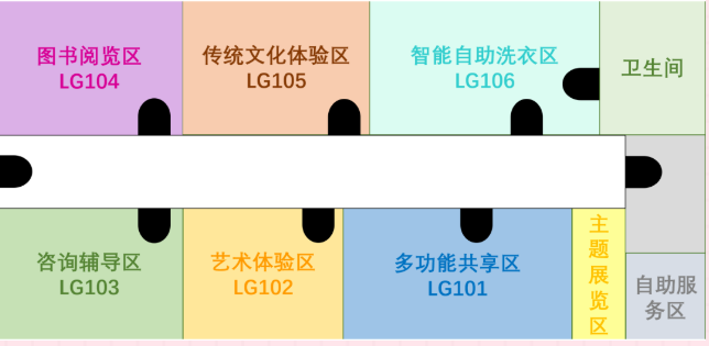 总共有八个模块,分别是图书阅览、传统文化体验、智能洗衣、自助服务、主题展览、艺术体验、多功能共享、咨询辅导,快来体验一下吧
