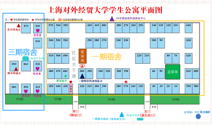 *宿舍分为一期(1- 64号楼)和三期(81- 89号楼)→开学前一定要找准自己所在宿舍楼~