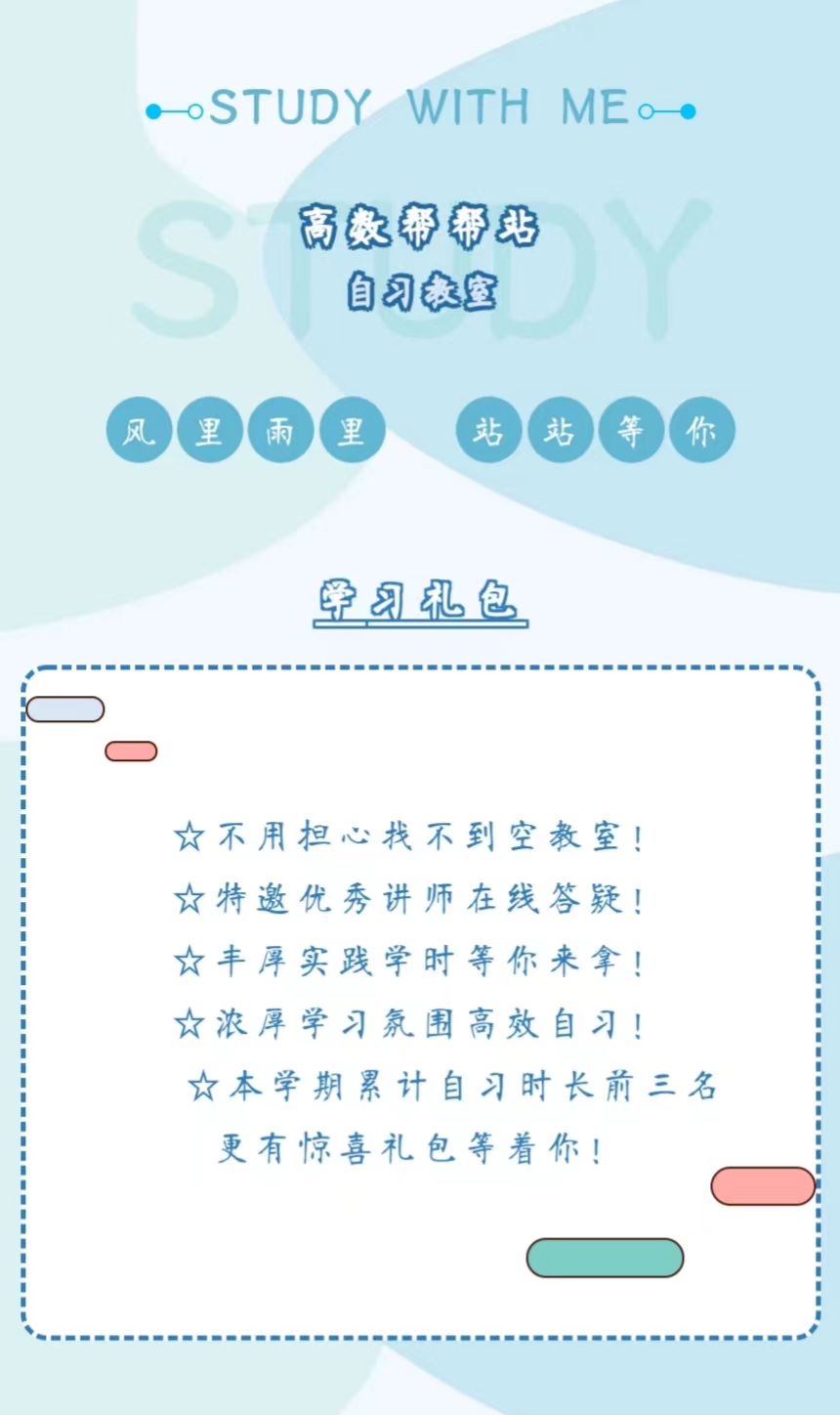 “高数帮帮站”是我院校级品牌活动,由我院学术部主办,主打线上答疑、线下自习室、期中期末考前辅导会,配备专业讲师,帮你划清复习重点、讲解经典例题。搞定数分、高代,一路打怪升级,全程满满干货,从此摆脱数学焦虑!