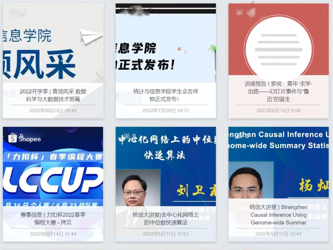 统计与信息学院宣传部隶属于学院团委,通过各个成员的共同努力,力争营造一个充满正能量的学院氛围,提高我院学子的责任感与上进心,让共青团的精神深入人心。