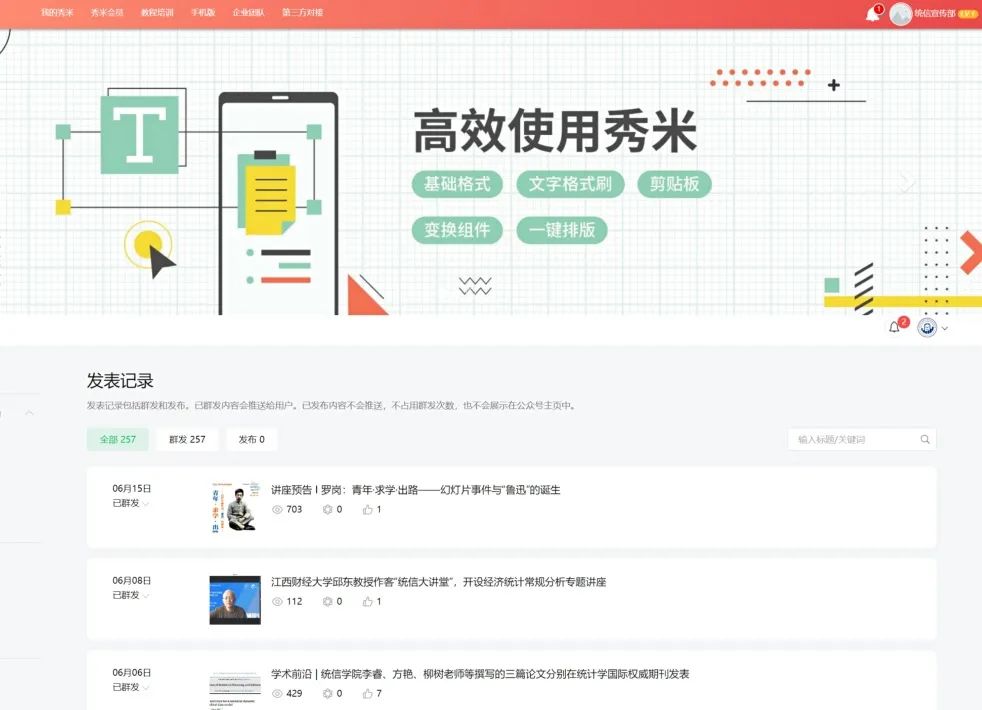 推送组负责公众号“SUIBE青春统信”与“上经贸大统计与信息学院”的运营和规划,能够第一时间掌握学院最新活动与成果,并协助团委各部门推送的顺利发行。如果你喜欢色彩与文字的相互碰撞,想要熟练使用秀米、掌握公众号运营的技巧,喜欢深入思考,想要掌握更多技能,那就快来加入我们吧~