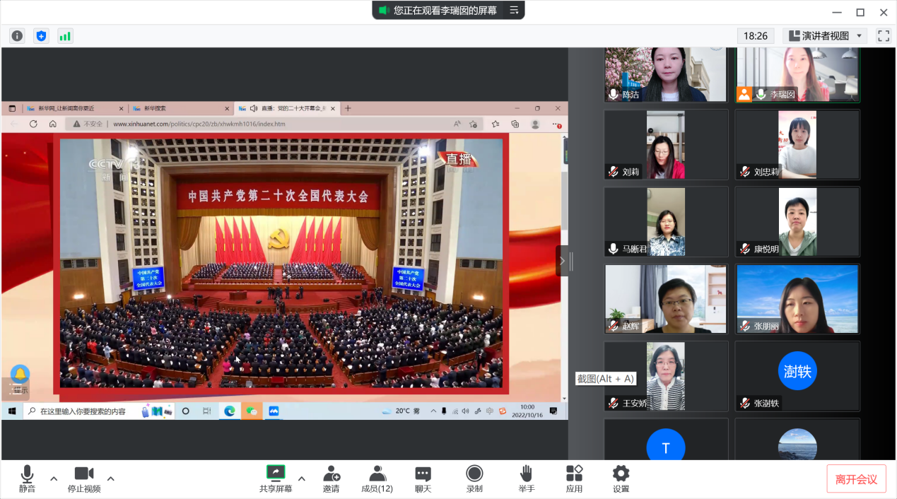 10月16日上午,统计与信息学院师生通过线下、线上相结合的方式,运用多种渠道收看大会开幕会实况,认真学习党的二十大报告。开幕会后,师生第一时间写下了观看开幕会的感想和体会。
