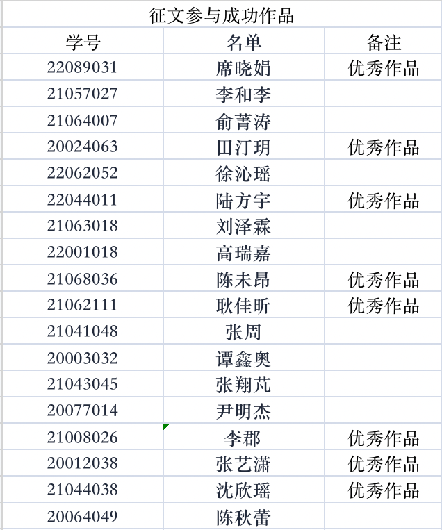 征文参与成功及优秀作品名单