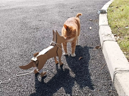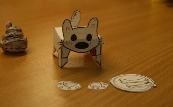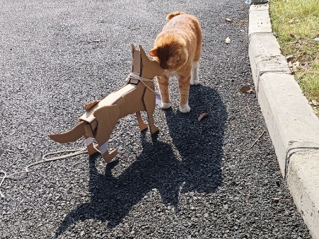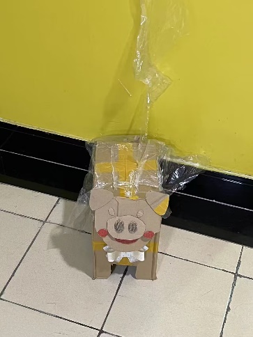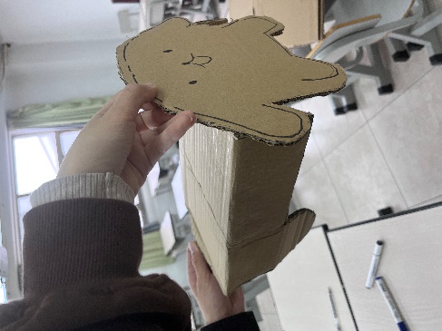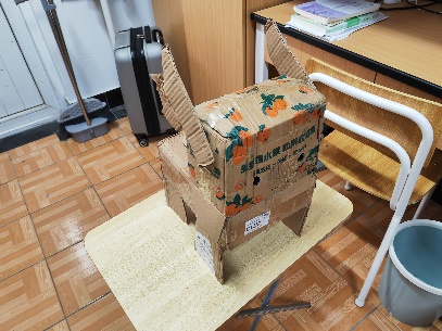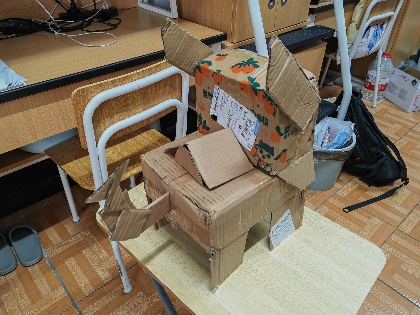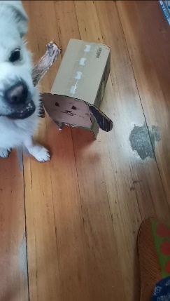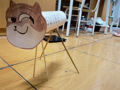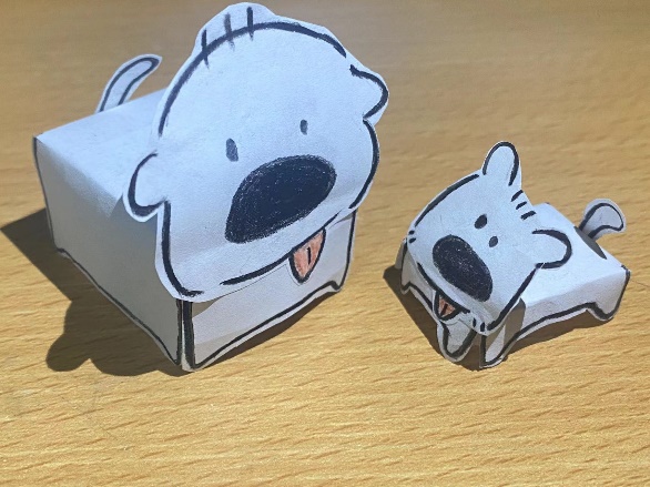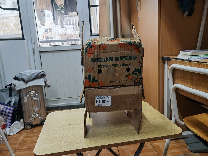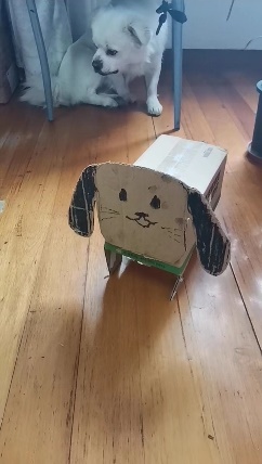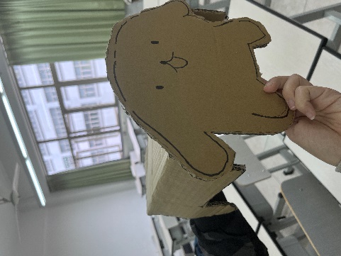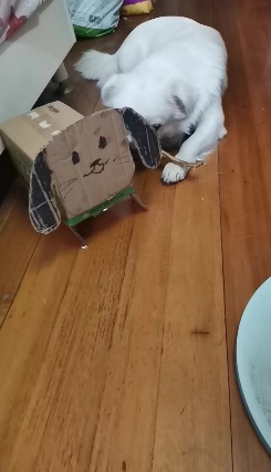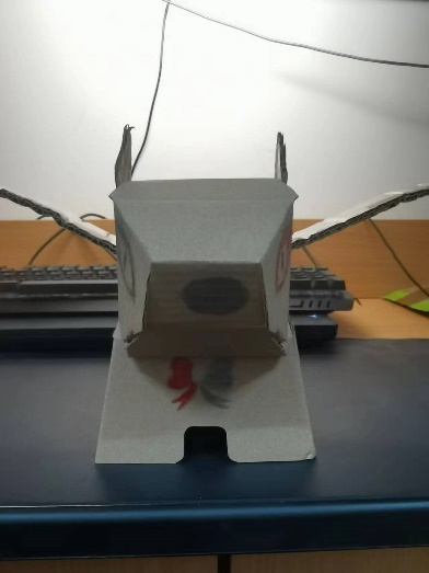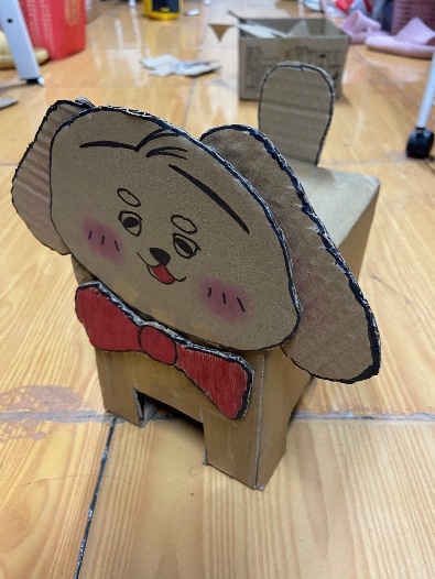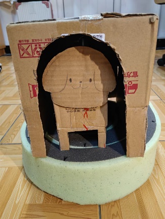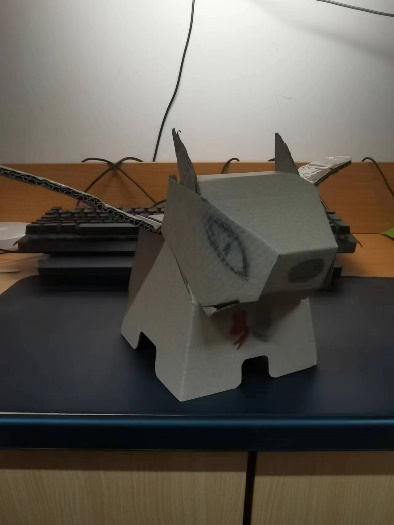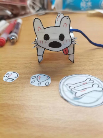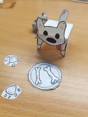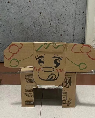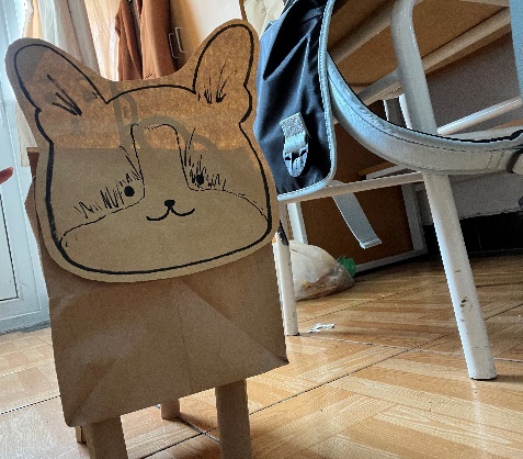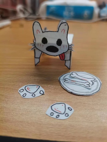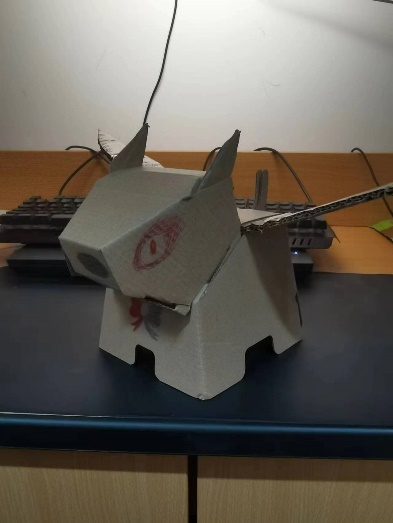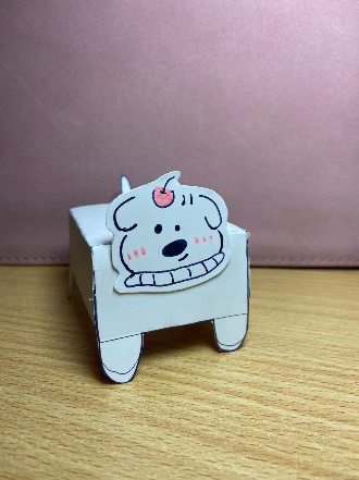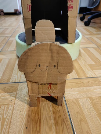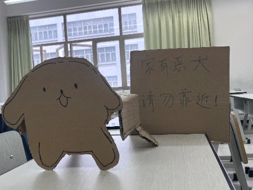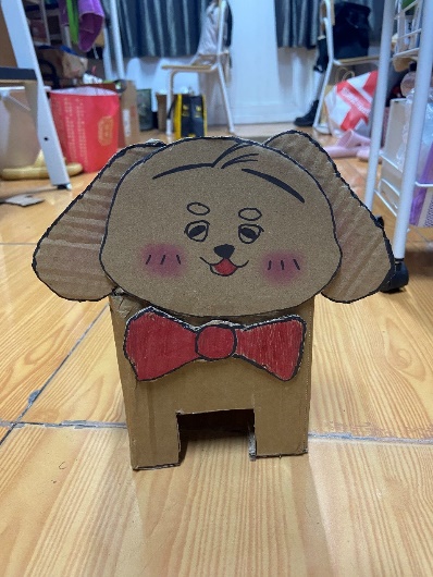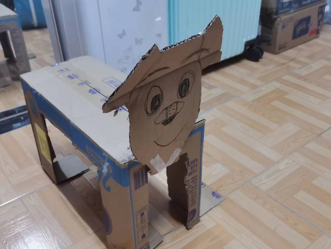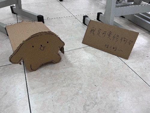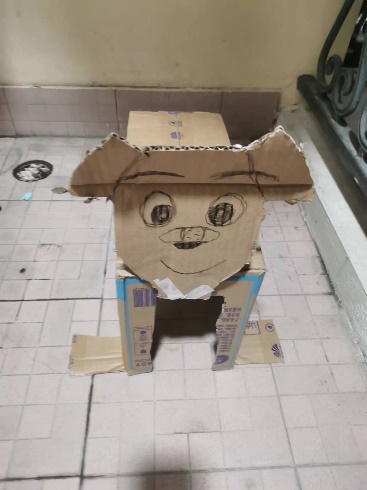 我的这只纸盒小狗名字叫“进进”,它是我在做进博会志愿者的隔离期间制作的纸盒小狗。这个小狗呢,它的特点是“小”。为什么小呢?是因为在进博会隔离期间,我手边没有很大的硬纸板或其他的材料,所以只用了身边的一本小本子上的纸张。但它虽然长得小,但却汇聚了进博会隔离期间我们一个厅的友谊。因为制作时材料不足,所以我的隔离室友和厅友都帮忙找了很长时间的材料,最后这只小狗在我们的齐心协力之下制作完成。所以它是汇聚了我们进博会隔离宿舍友谊力量的小狗,我们都很喜欢这只小但“五脏俱全”的小狗。