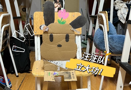 大家好,我是一只叫做黑豆的小狗,这个名字是我的主人们给我起的。现在,让我来给你们讲讲我的故事吧。其实,本来我不是一只小狗,我只是一个纸箱子,在完成了运输快递的任务后,我就跟其他的纸盒一样,被丢在了快递站的门口。但是,我很幸运,我被主人捡起来带回了寝室,她们说她们要把我打扮成世界上最最可爱的小狗。于是,我摇身一变,变成了7008的第二只小狗,和“乌漆嘛黑”一起,待在寝室的门上,再也不怕风吹雨打,保护着主人们。
