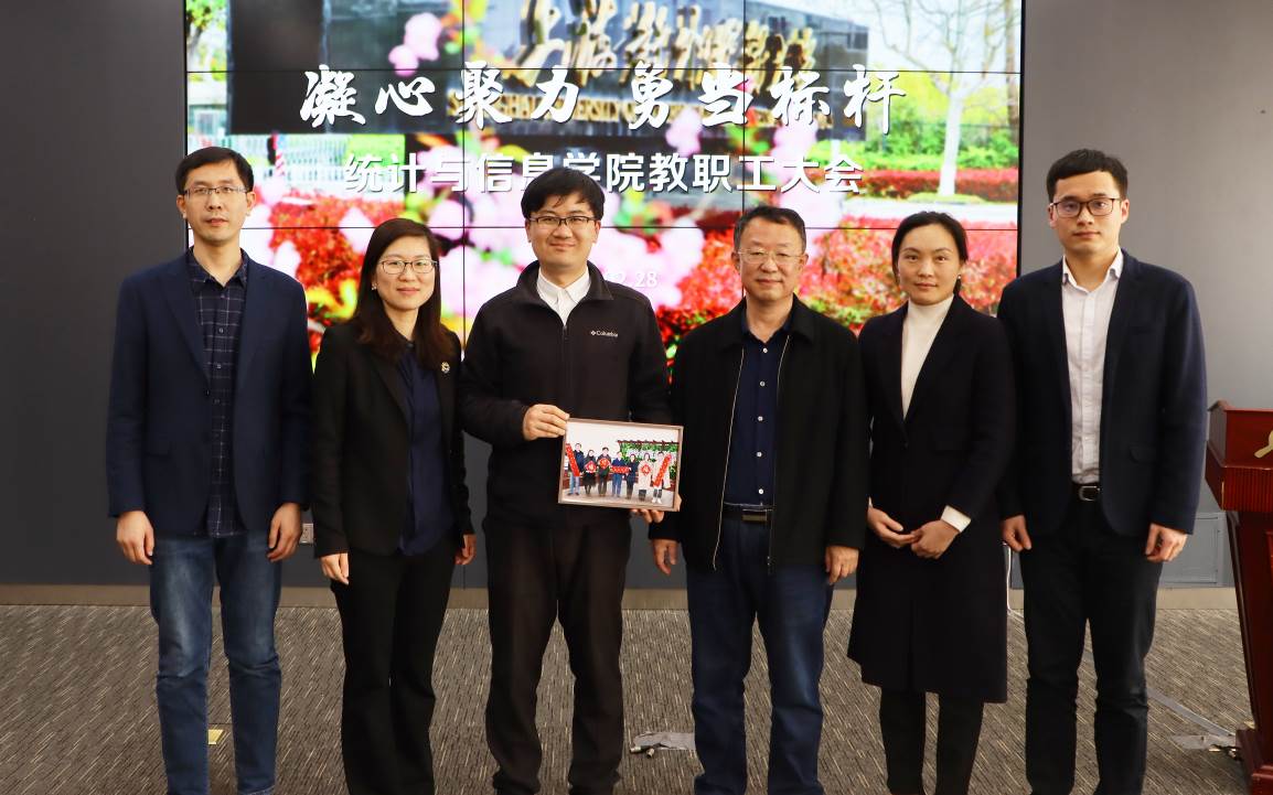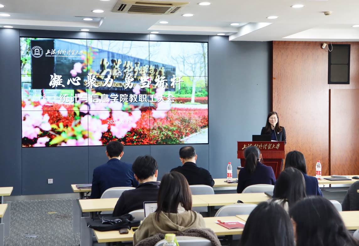 2月28日下午,统计与信息学院在信息楼503会议室召开新学期全体教职工大会,会议以“凝心聚力 勇当标杆”为主题,结合贯彻落实学校春季学期务虚会议精神对新学期工作进行部署。学院领导班子、全体教职工参加了会议。会议由学院党委书记刘素贞主持。