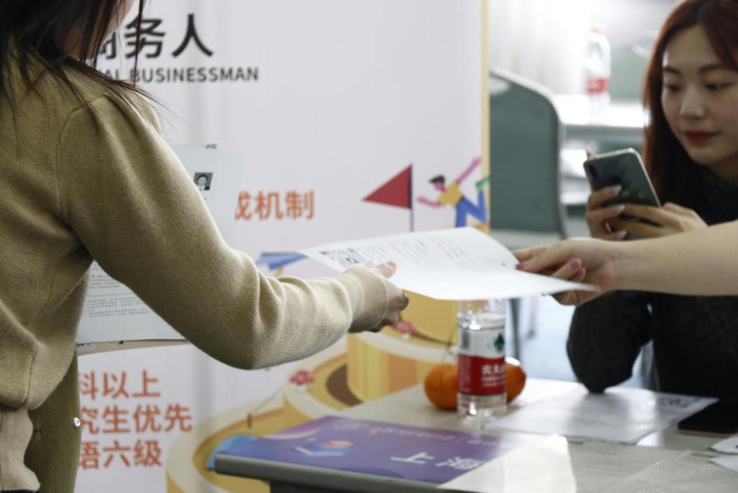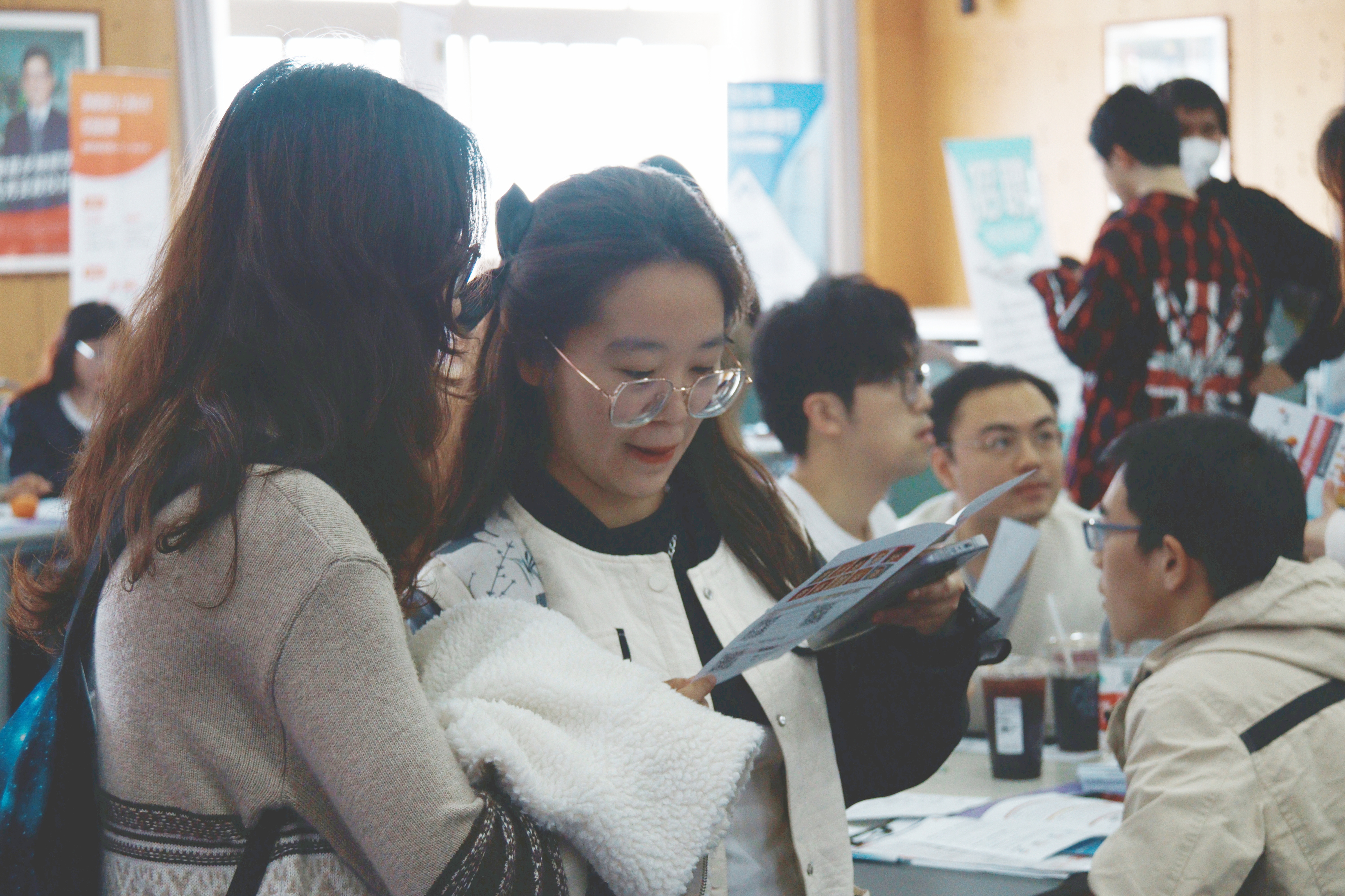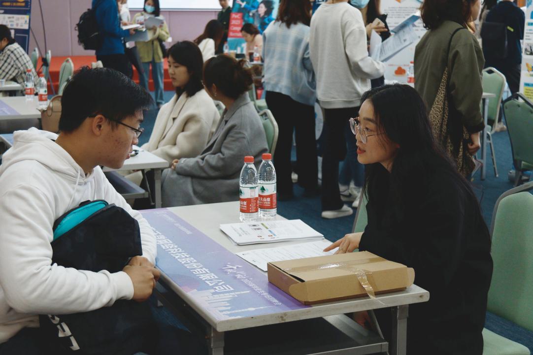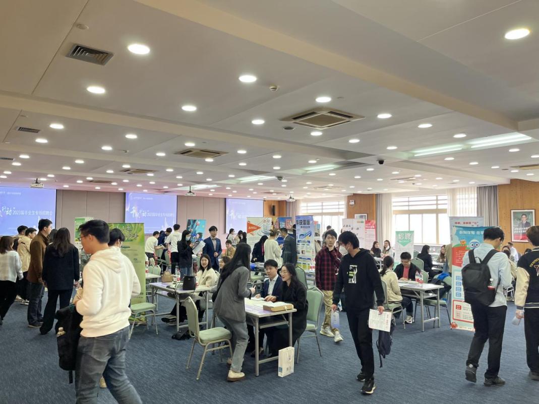 招聘会现场熙来攘往,气氛热烈。应届毕业生们身着正装,