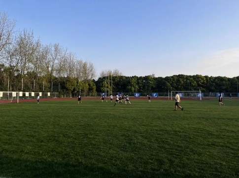 四月十日星期一下午五点,统信vs经贸的比赛正式开始。比赛第3分钟,经贸12号带球至中场,送出一记手术刀般的直塞,24号捅射远角先拔头筹。比赛第11分钟,10号顾忆恺前场抢断,带球直入,打出一脚远射,可惜有些偏差,并未进球。上半场接下来的比赛,经贸对我方展开猛烈进攻,多次传球至前场进攻三区,但我方配合默契,防守稳固,封锁射门路线,对方屡屡无功而返。
