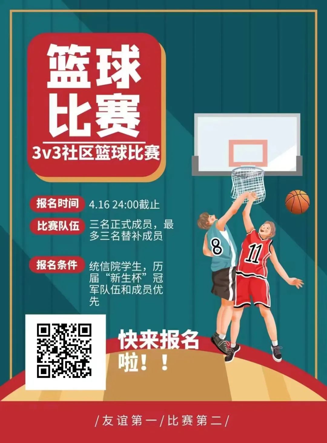 为了响应“努力振兴‘三大球’,加快建设体育强国”的口号,希望继续增加“三大球”在同学们当中的影响力,更希望能够帮助社区同学形成热爱体育锻炼的良好氛围,在运动中收获快乐。诚邀各位同学参与各学院联合举办的2022-2023年度下半学期社区篮球对抗赛!