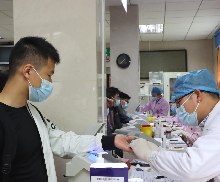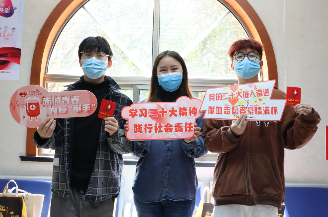 上午9点30分,校医务室门口已经排起了长队,井然有序,热情高涨。辅导员肖包兴邦老师、岳怡寒老师、彭鹏老师带领志愿者们给参与献血的同学们作信息登记,并发放点心。