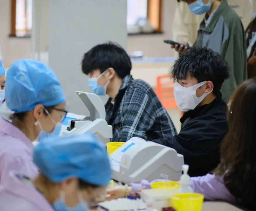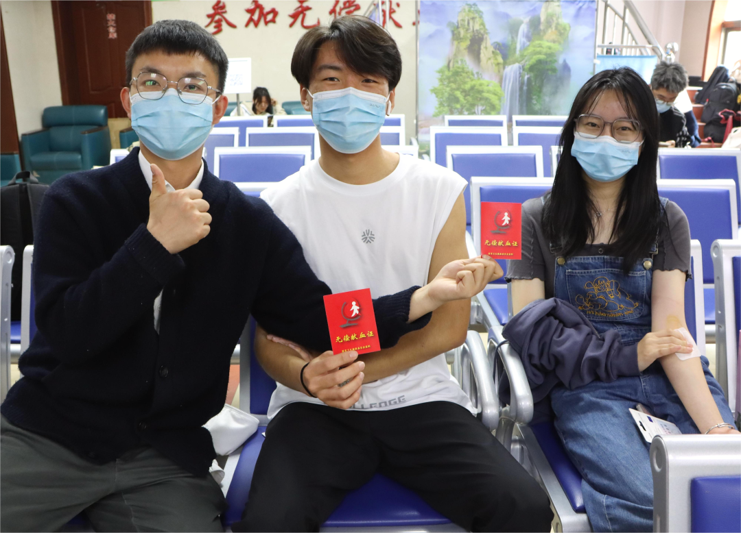 采血室里,所有同学都积极配合医护人员完成采血流程。在接过《无偿献血证》的时候,很多同学都露出了自豪的笑容。