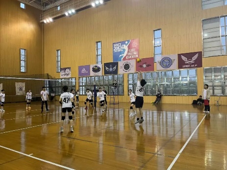 开局由统信发球,统信队员李平、徐沁蕾、张笑扬配合默契,扣球得分,顺利拿下第一分。统信开局势头很猛,连续发球、吊球得分,5:0。在几轮回合过后,随着外院队员的扣球砸向地面,外院取得了这句比赛的第一个得分,比分8:1,并以这个势头开始了反击,通过稳定的接应连得四分。统信队员们临危不乱,李平、赵思萁、张笑扬以默契的配合应对外院的进攻,比分来到了21:21平。统信拦网出界,比赛来到外院赛点。最终外院队员吊球得分,统信惜败,以23:25结束比赛。