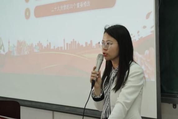 结业仪式在庄严的国歌声中拉开序幕。刘素贞为同学们做了题为《有理想敢担当能吃苦肯奋斗——为中国式现代化贡献青春力量》的结业党课。她希望入党积极分子再问自己三个问题:是否准备好加入中国共产党?自己做了哪些努力?是否符合一名党员的标准?然后通过四个关键词“学、讲、走、干”,鼓励同学们努力学好理论知识,尤其是党的创新理论,不断提升理论修养;发挥专业特长,加入学院“数说党史数说中国”理论宣讲团,以数据化的方式解读党的二十大精神和新时代伟大变革;注重实践历练,结合“访万企,读中国”社会调查平台,深入社会基层一线开展调研,以脚步丈量祖国大地;勇于担当作为,以实干精神贡献自己的智慧和力量,为师生服务,为社会服务,为人民服务。最后,刘素贞向同学们提出殷切期望,希望同学们做有胸怀、有关怀、有情怀的人,坚定理想信念,关心民族和国家发展,承担起新时代青年的责任,自觉接受党组织的考验,争取早日加入党组织。