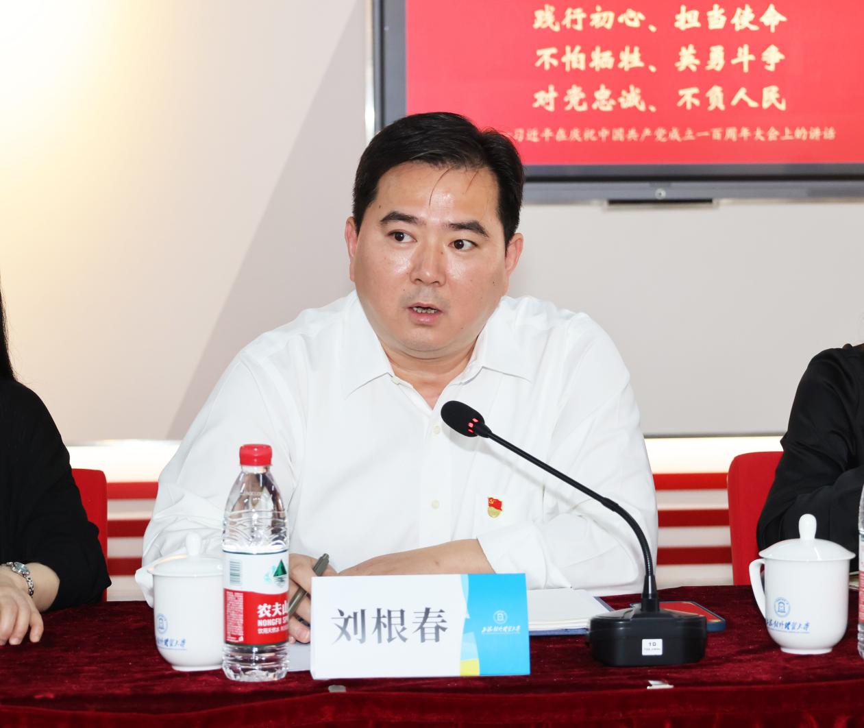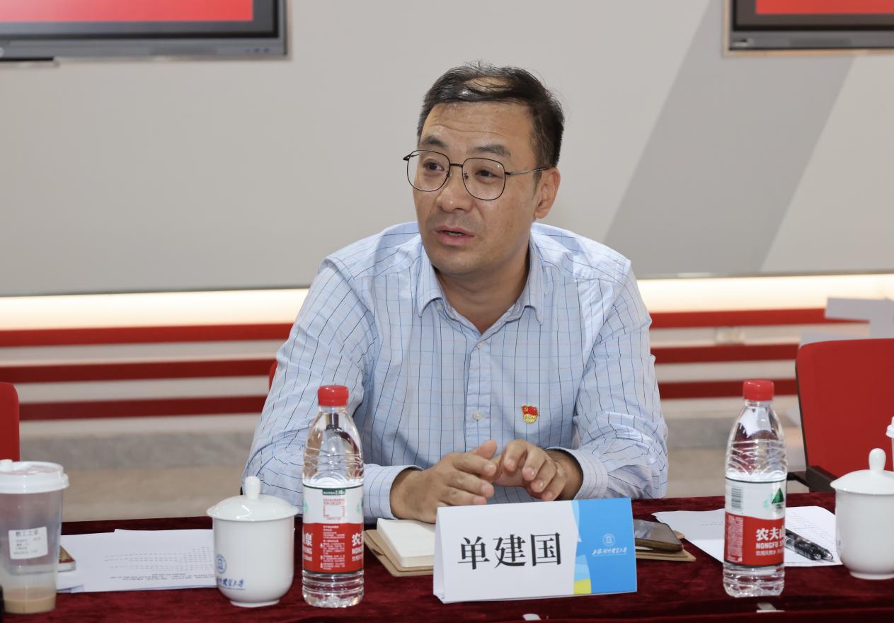 王玉和单建国分别介绍了国际商务外语学院本科教育教学和大学英语教学的情况。胡筱颖介绍了商务英语教工党支部作为全国首批样板支部的建设情况。