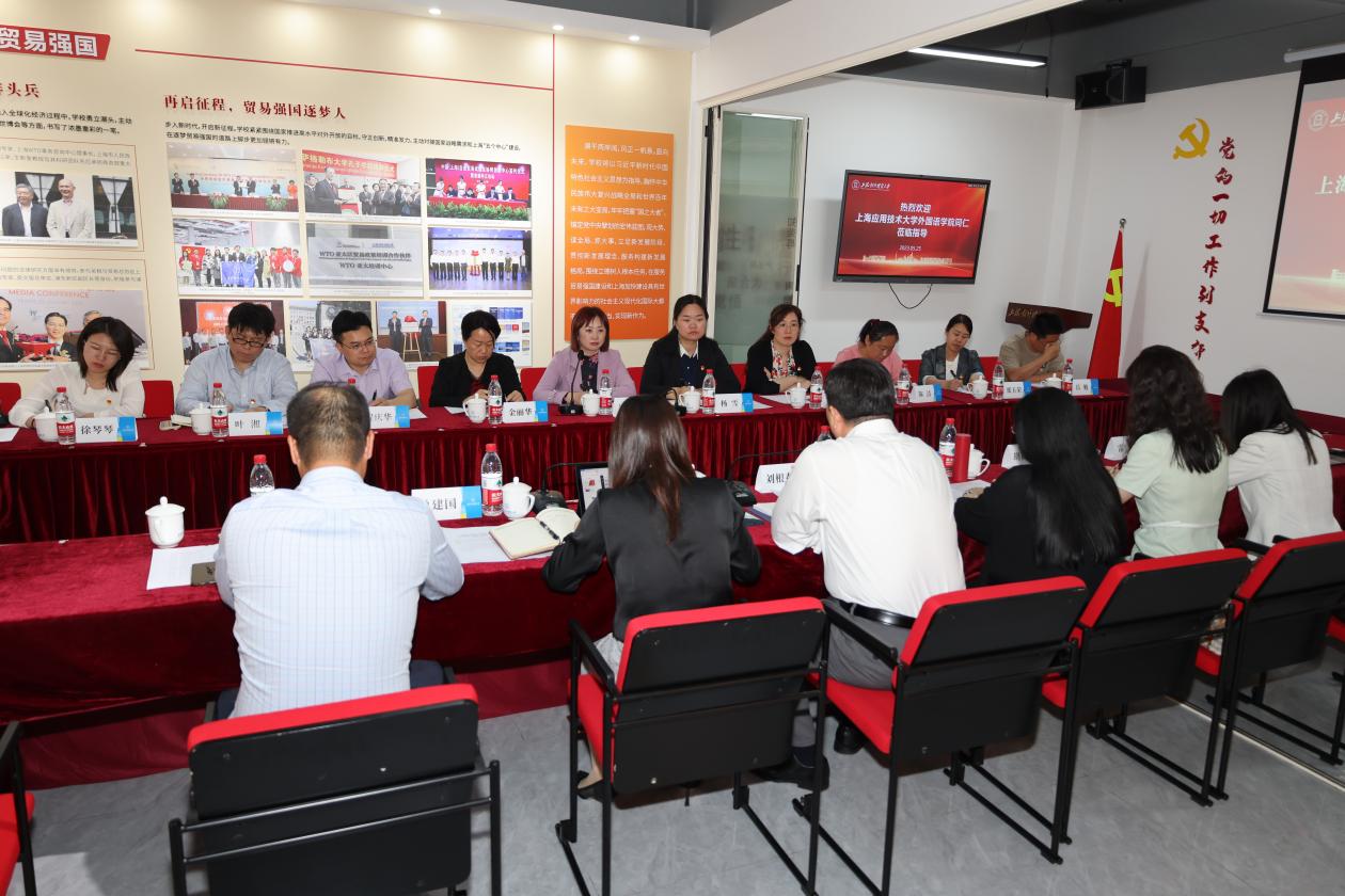 5月25日,上海应用技术大学外国语学院党总支书记杨雪、院长潘智丹带队一行来必赢626net入口首页开展主题教育调研,与国际商务外语学院、统计与信息学院围绕党的建设、学科建设、课程建设、人才培养等内容进行座谈研讨。国际商务外语学院党委书记刘根春,统计与信息学院党委书记刘素贞,国际商务外语学院副院长王玉、单建国、商务英语教工党支部书记胡筱颖等出席调研交流会。交流会由刘素贞主持。