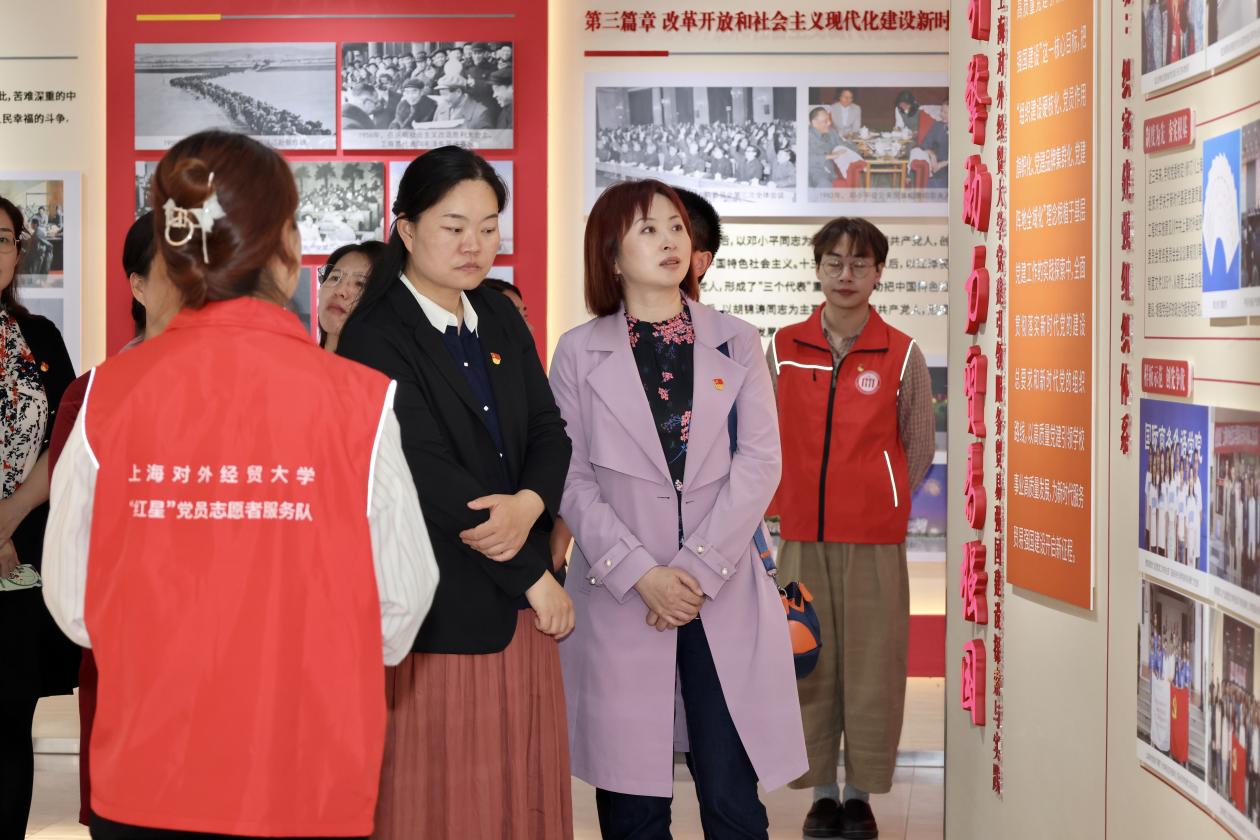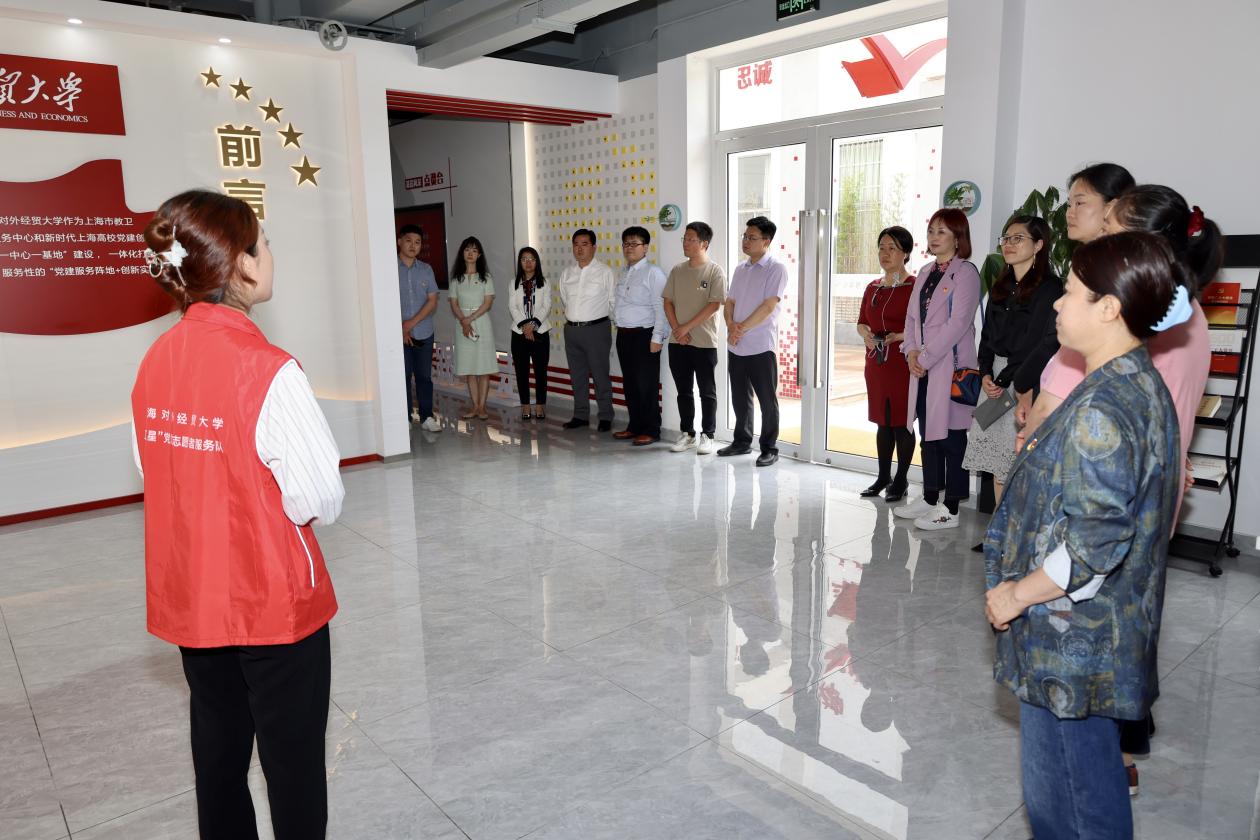 会前,上海应用技术大学一行在志愿者的带领下参观了学校党建服务中心。