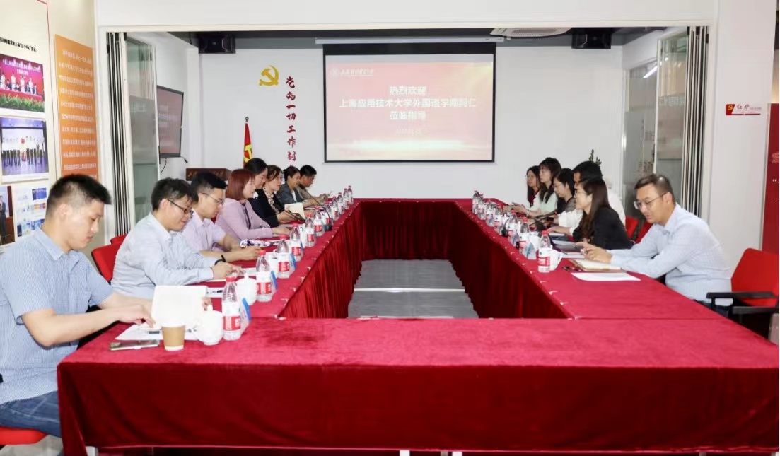 刘根春对上海应用技术大学外国语学院领导教师的来访表示热烈欢迎,他详细介绍了国际商务外语学院的发展历史、师资队伍建设、科学研究和人才培养特色等情况。
