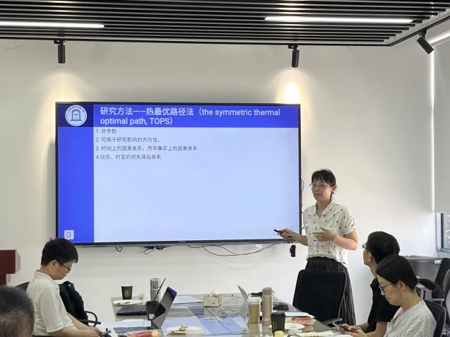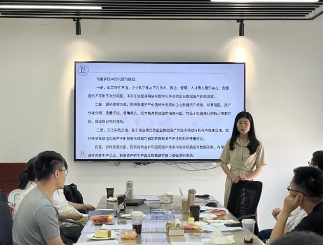 统计与信息学院教师刘关福、邵颖慧、柴海涛、胡亚茹,国际经贸学院教师何晓波、林滨,金融管理学院教师徐寿福、朱伟骅等,分别结合自己的研究领域、研究方法做了成果汇报和学术交流。