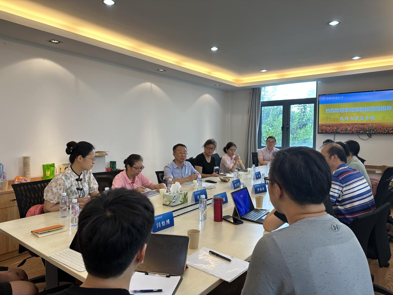 受统计与信息学院邀请,7月7日上午,美国宾州州立大学统计系李润泽教授莅临学院交流指导。统计与信息学院院长张日权,副院长王利娟、李睿,学院教师代表以及华东师范大学统计学院博士生代表参加了座谈交流。会议由院长张日权主持。