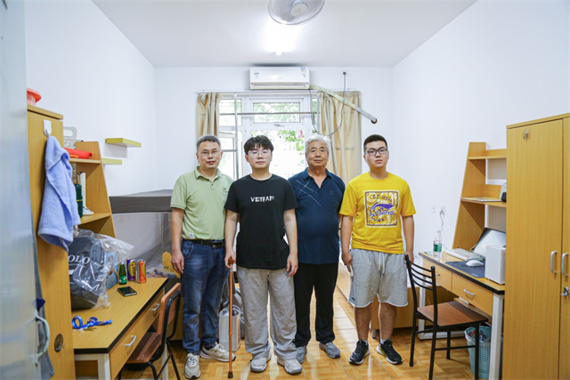 辅导员刘轩旖介绍,学院特地为郭士琪安排了一名室友,便于在日常学习与生活上照应对方。同班同学祝伟智是人工智能2301班的临时负责人,在得知了郭士琪的情况后,主动挑起这项重任:“未来四年请多多关照!”新生报到这两天里,祝伟智也同郭士琪的家人一起克服了许多困难,装网络宽带、空调缴费、热水卡充值等,他从行动上真正帮助自己的同窗室友。