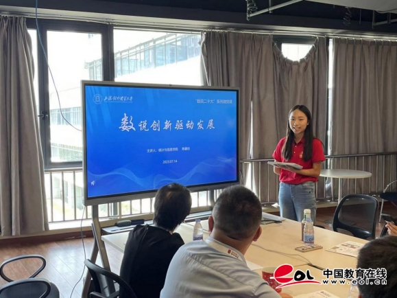在企业调查中,统计与信息学院“数说中国”理论宣讲团走进企业课堂和田间地头,为企业家、公司白领、农业经营户开设“数说贸易强国”“数说创新驱动发展”“数说乡村振兴”“数说上海城市发展”等“数说中国”系列理论课程,用一组组详实的数据、可视化图表,生动鲜活地阐释了党的创新理论和新时代上海发展变化。从6月底开始,“数说中国”宣讲团走访30余家企业和农场,在深入调研企业发展的过程中,为市北高新科技园、北京企企科技有限公司上海分公司、上海知从科技有限公司、松江区新浜镇、叶榭镇的多个农业合作社等送上一堂堂别开生面的“数说”系列理论课程。