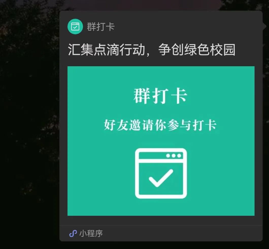 第一步:扫码加入打卡群后,点开工作人员所发打卡小程序,如例图