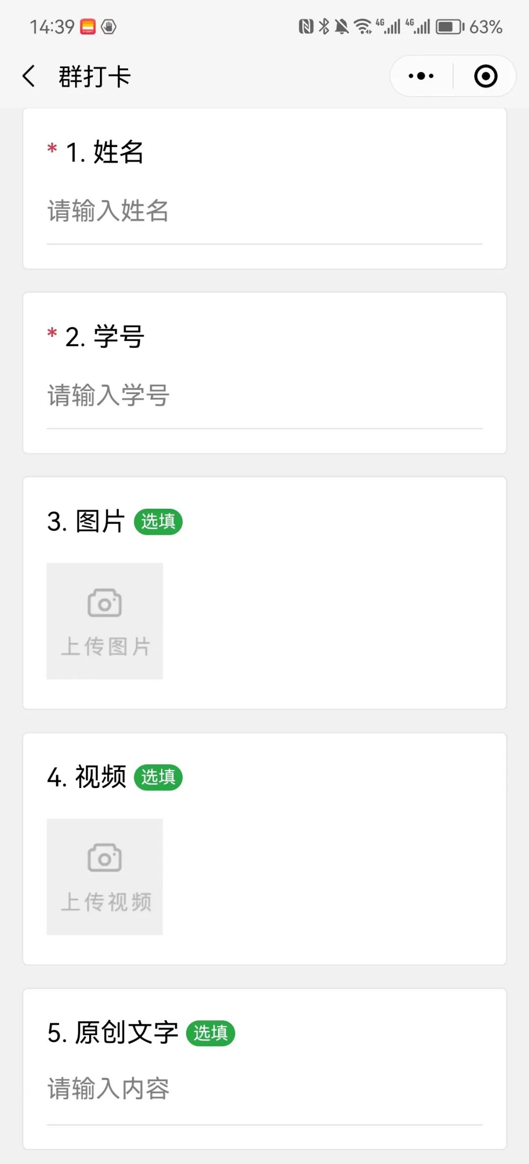 第三步:打卡内容中,必填项目为姓名与学号,请将自己的姓名学号准确填入,方便工作人员统计。