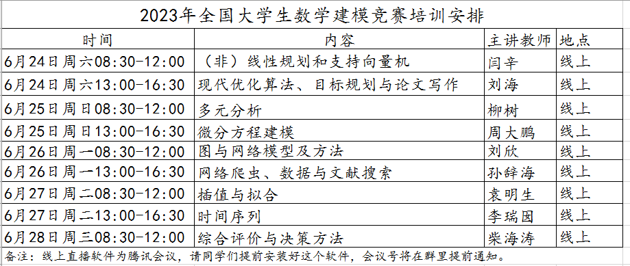 2.培训内容重要,请晋级校内选拔赛的小组务必全勤参加,鼓励对数学建模感兴趣的同学们积极参与。