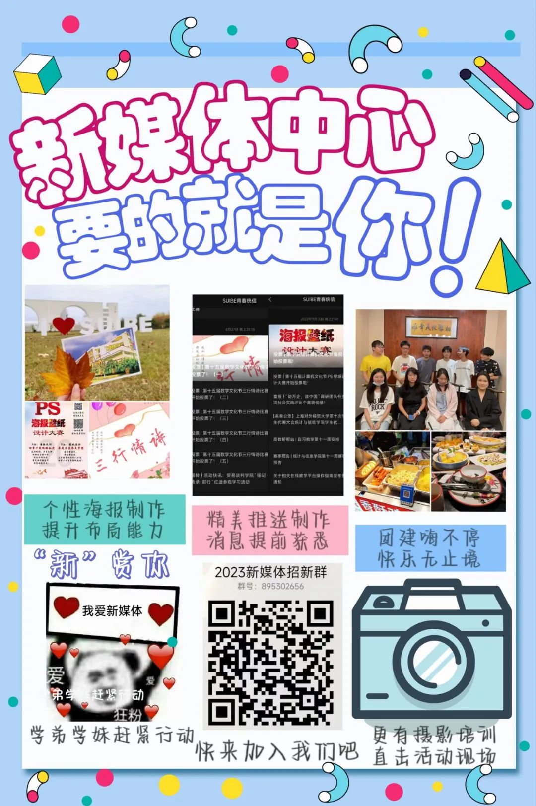 在这里,你能制作节日海报,设计属于自己的衍生品;学到如何进行视频剪辑,使用相机为学校拍美照;还能学到专业P照片的能力!想在学院公众号上看到自己设计的海报和拍摄的照片吗?想要感受完成照相工作后的成就感吗?赶快加入技术单元吧~
