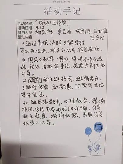 青领志愿者们都在尽自己的努力让新生对校园有初步的认识,方便新生们快速进
